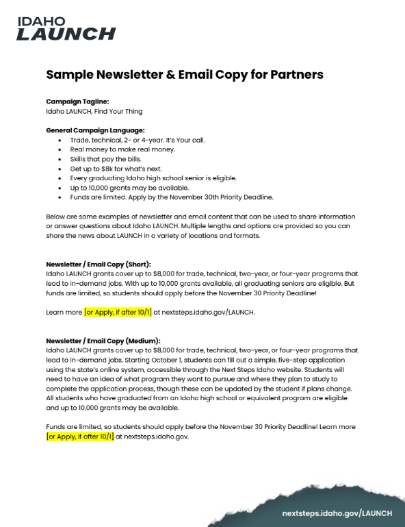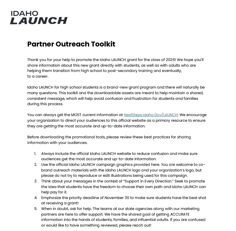 Thank you for your help to promote the Idaho LAUNCH grant for the class of 2026!