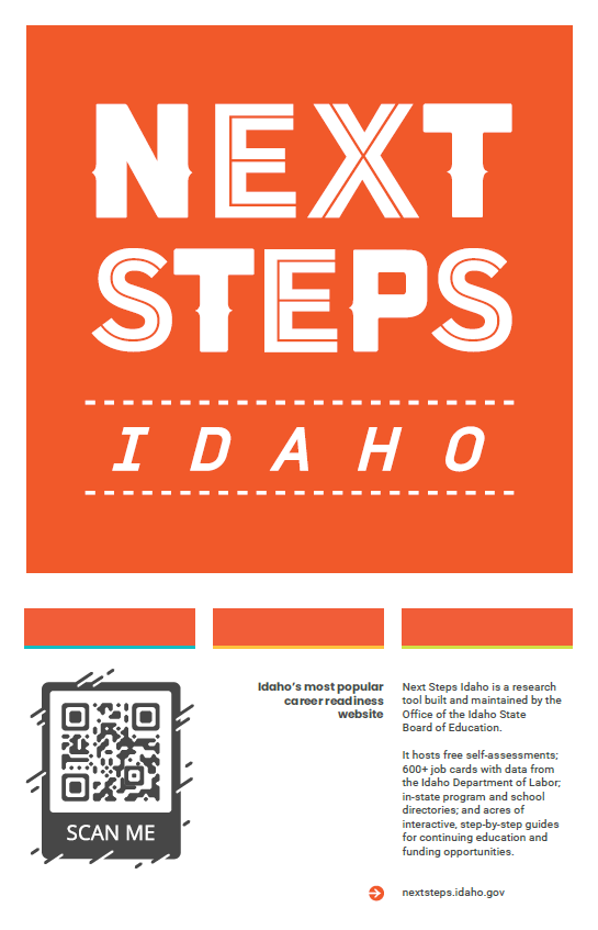 Use these materials to share the name, brand, message, and purpose of Next Steps Idaho!